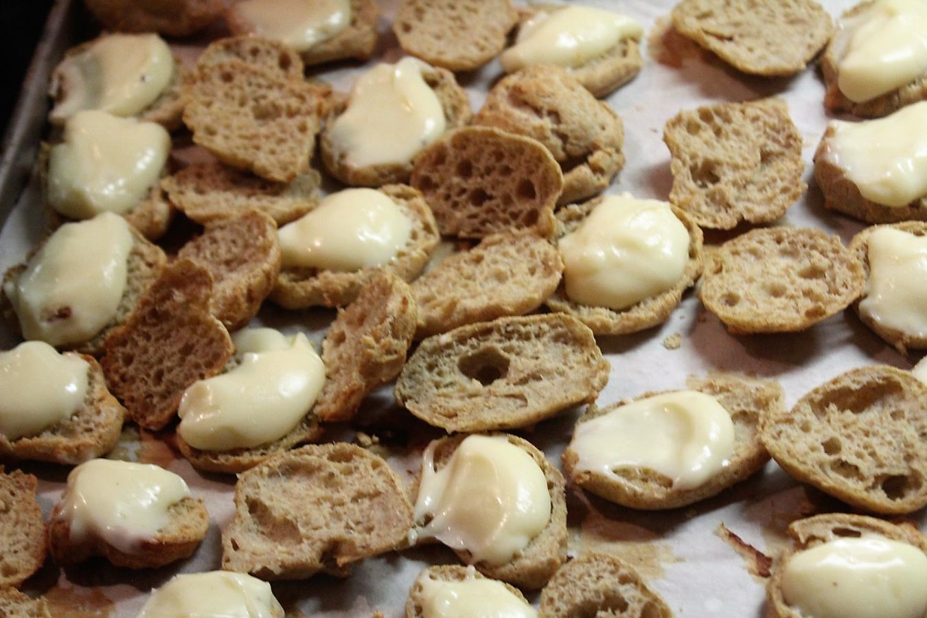 Das Ding sah aus wie ein alter Socken und deswegen habe ich oben rechts mal drei Windbeutel damit auf das Blech gesetzt, bevor der Teig aus allen Ritzen quoll, weil das Material so alt und morsch war. Ich habe dann mit einem Teelöffel weiter gemacht. Das alte Teil habe ich natürlich sofort entsorgt und könnte wetten, dass meine Mutter es wieder aus dem Müll geholt hat, nachdem wir Sonntag wieder weg waren. Mach was dran.