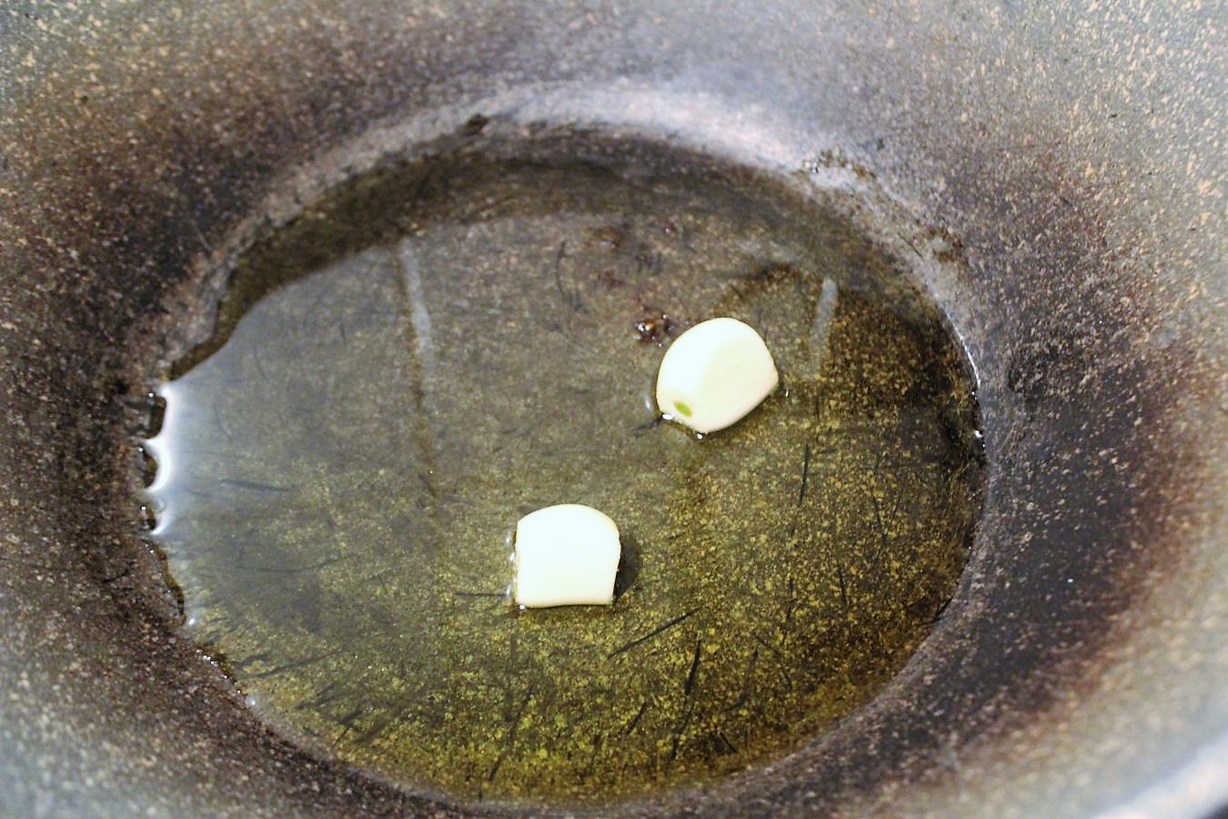 Zwei Knoblauchzehen häuten und in heißem Olivenöl anschwenken