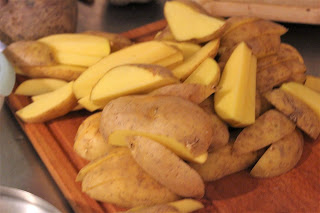 Als Beilage gibt es nichts besonderes, nur ein paar frische Pommes, selbst geschnitten aus Kartoffeln. Das ist halt Familienessen und davon habe ich ja reichlich.