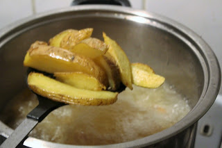Der erste Durchgang ist nur dazu da, dass die Kartoffeln garen. Knusprig wird es erst im zweiten Durchgang