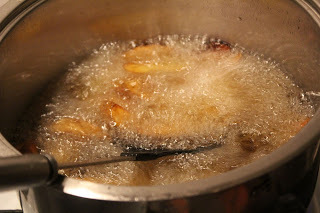 Hier kommt die erste Ladung aus dem Fett. Nun noch ein bisschen Salz darüber geben und das Essen kann auf den Tisch, wo schon die kleinen Raubtiere auf Nahrung warten.