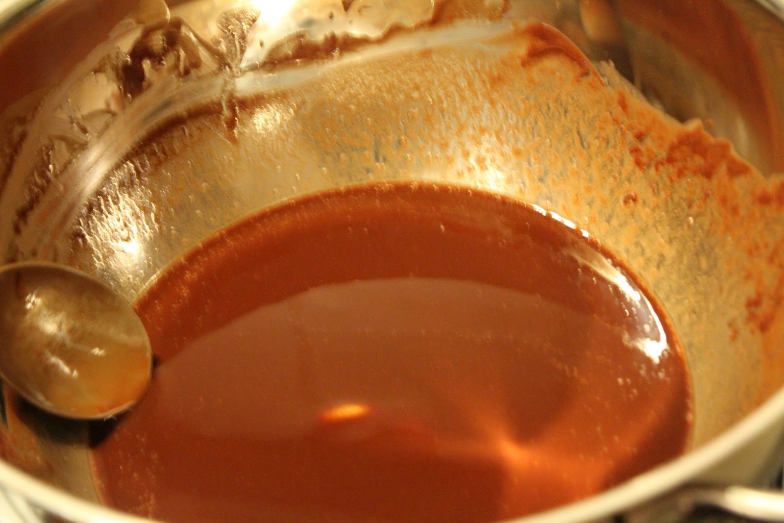 Butter und Schokolade sind jetzt auch miteinander verschmolzen. Boah schmeckt das zusammen gut. Ich war kurz davor, die Kuchenproduktion einzustellen und das Zeug stattdessen pur zu Löffeln. Fett ist halt doch ein Geschmacksträger.