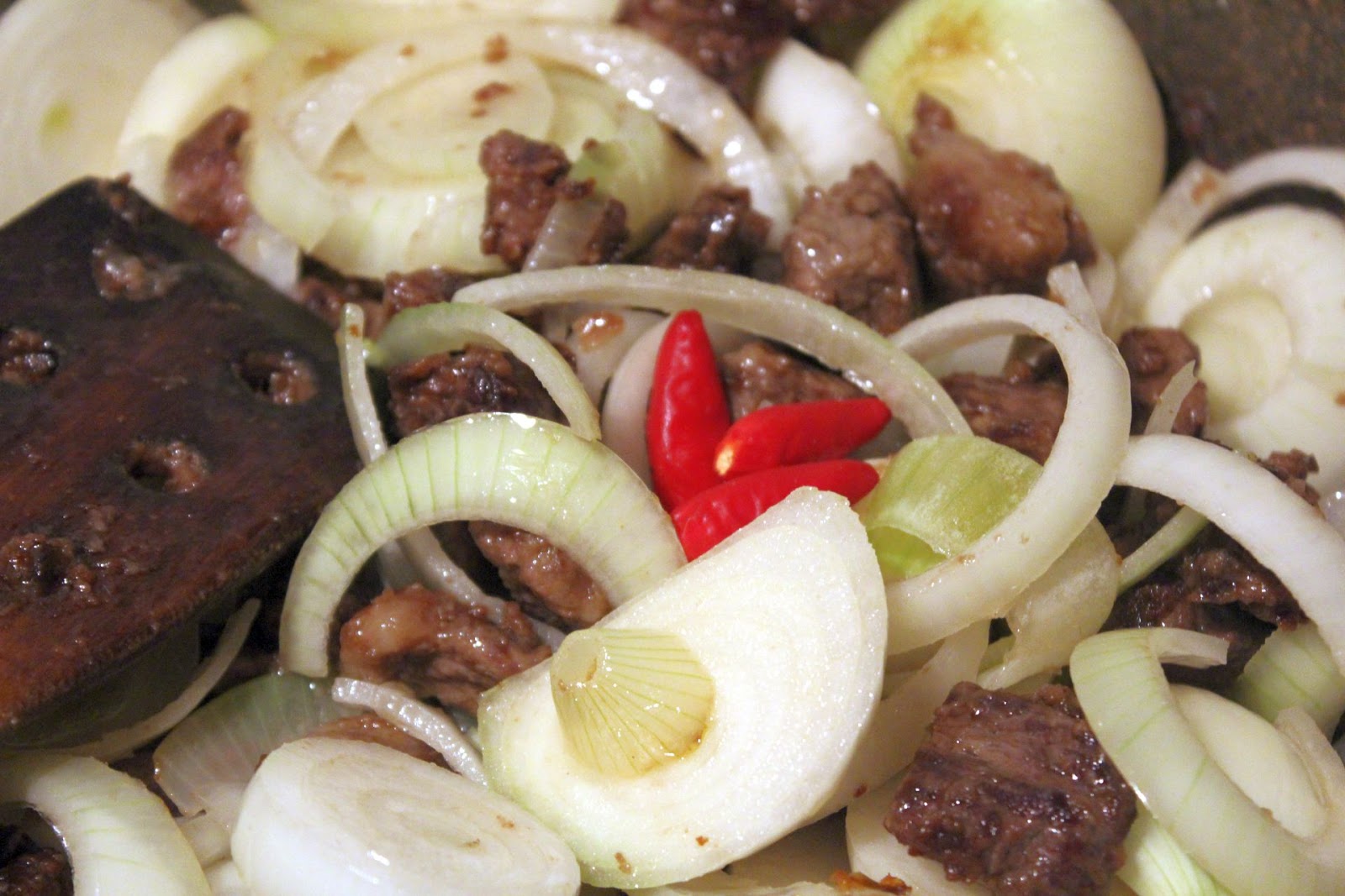 Zwiebeln ebenfalls in den Wok geben.