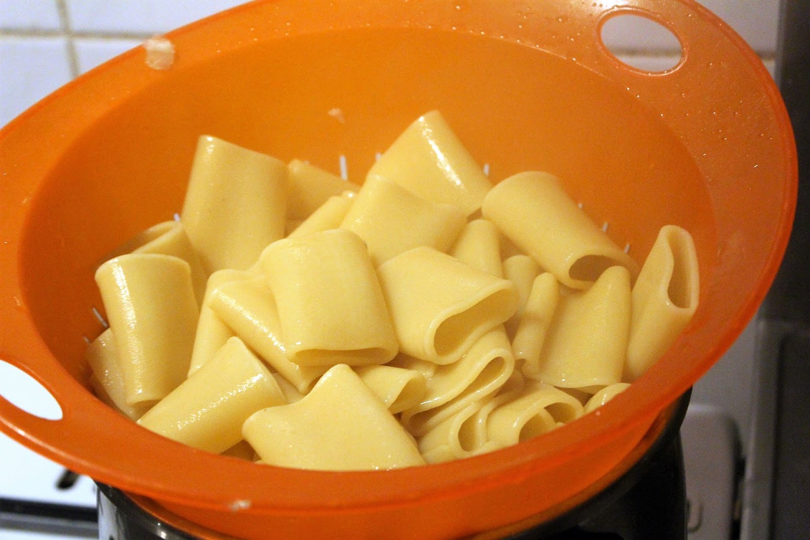 Als einfache Beilage, damit die Kinder rechtzeitig ins Bett kommen, gibt es Nudeln. Die sind aber einen Tick chicer und ein Format, das ich auf meiner eigenen Nudelmaschine nicht selbst machen kann, falls sich jemand an den gekauften Nudeln aufhängen möchte.