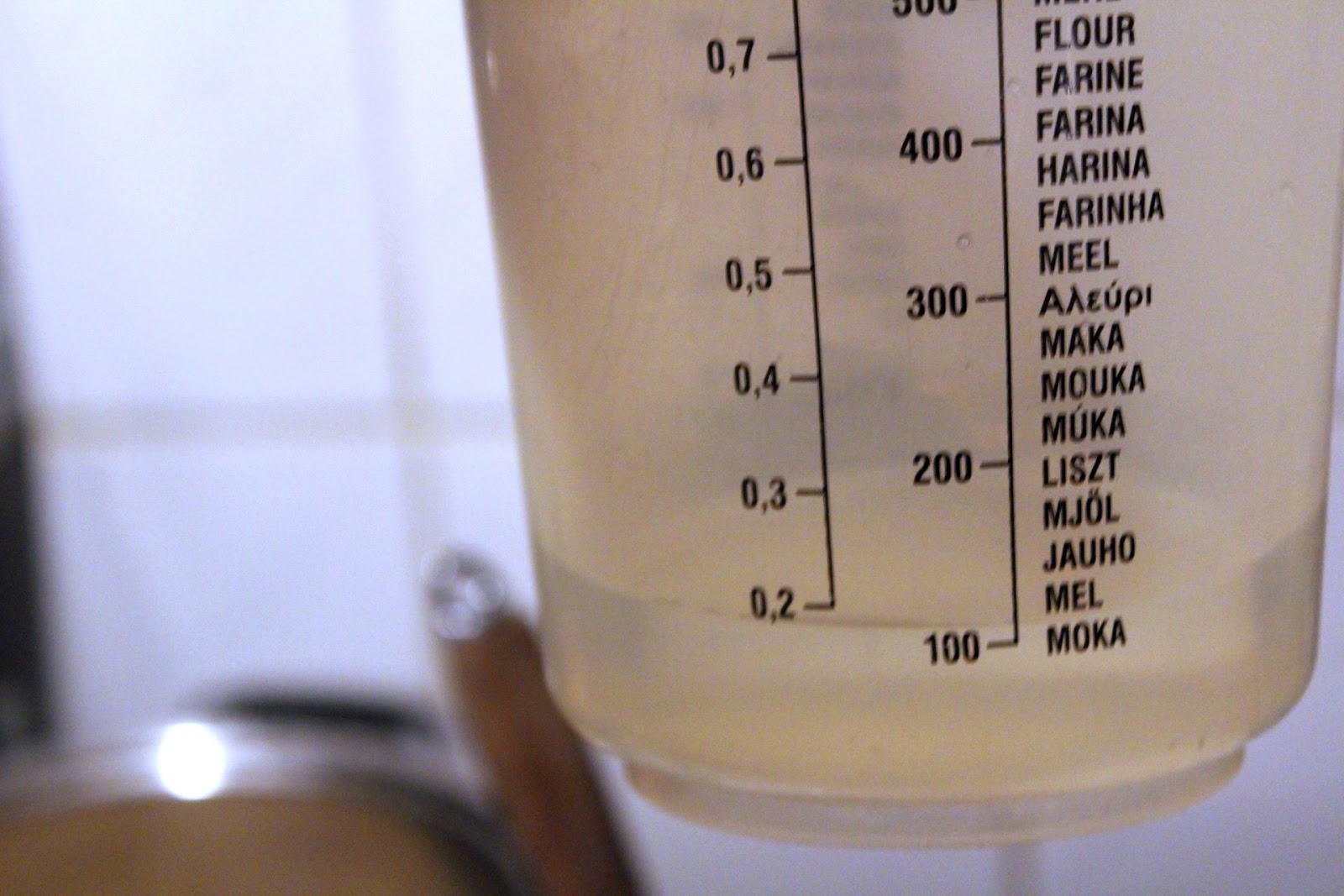 300 Milliliter Wasser dazu geben. Ich habe mit 200 Millilitern angefangen, aber ich brauchte noch mehr Flüssigkeit, deswegen gleich 300 Milliliter nehmen.