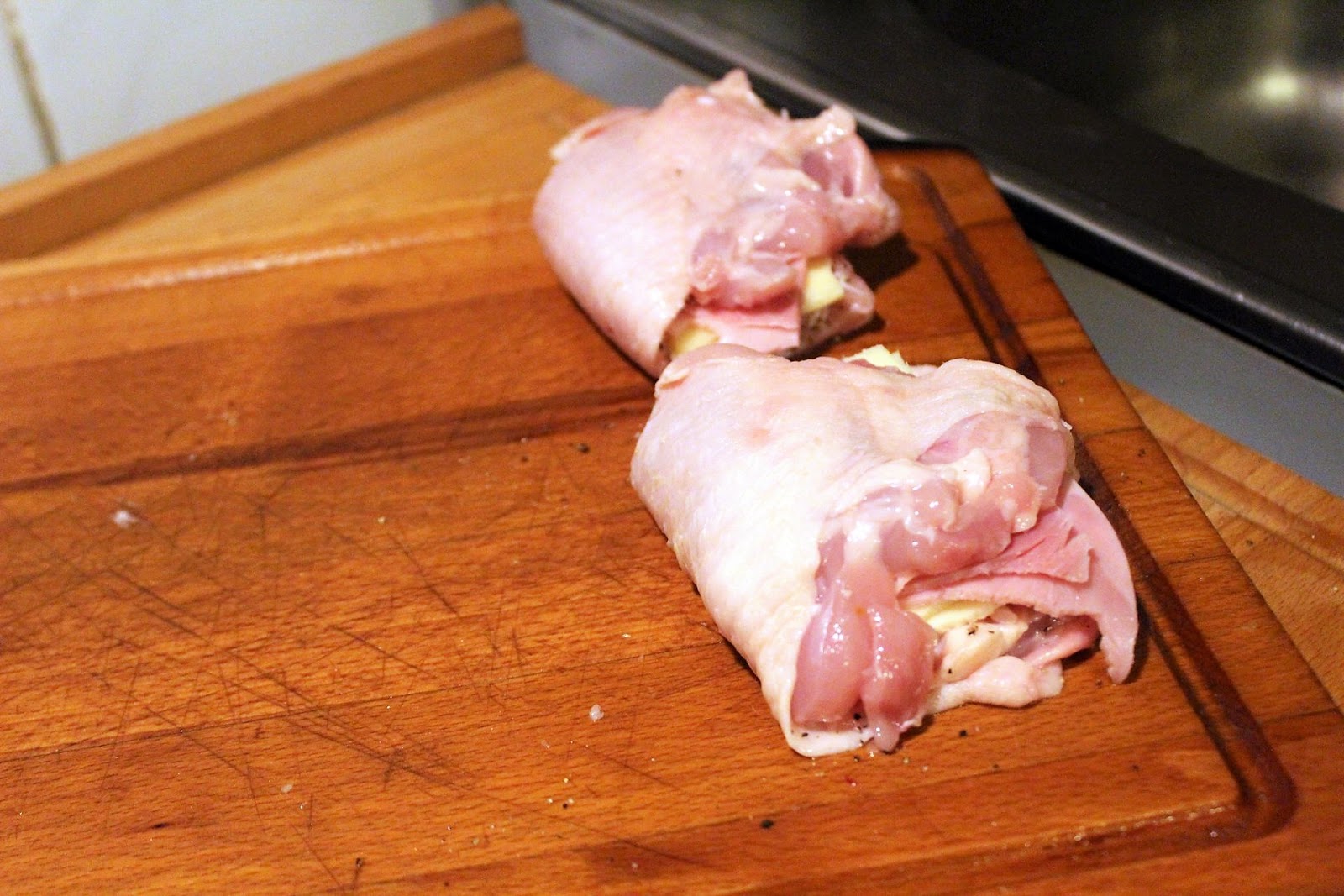 Ich mache als erstes eine Version als Cordon bleu. Von innen mit Salz und Pfeffer würzen