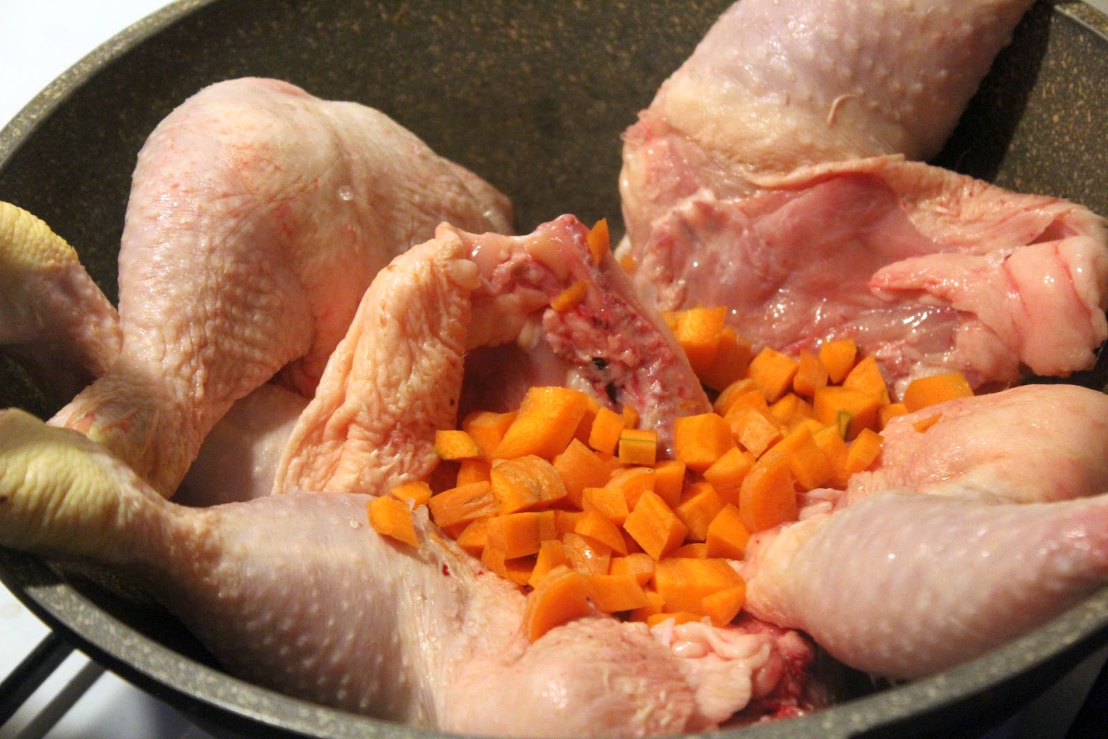 zarten Huhn wie beim Chinesen (anklicken) gemacht habe, stehen meine Kinder auch total auf Soßen mit Sojasoße. Freitag rief mich meine Frau im Laden an, weil alle Grippe, Scharlach und andere Erkrankungen haben, dass ich Huhn mitbringen soll, um eine Hühnerbrühe für die Familie zu kochen.