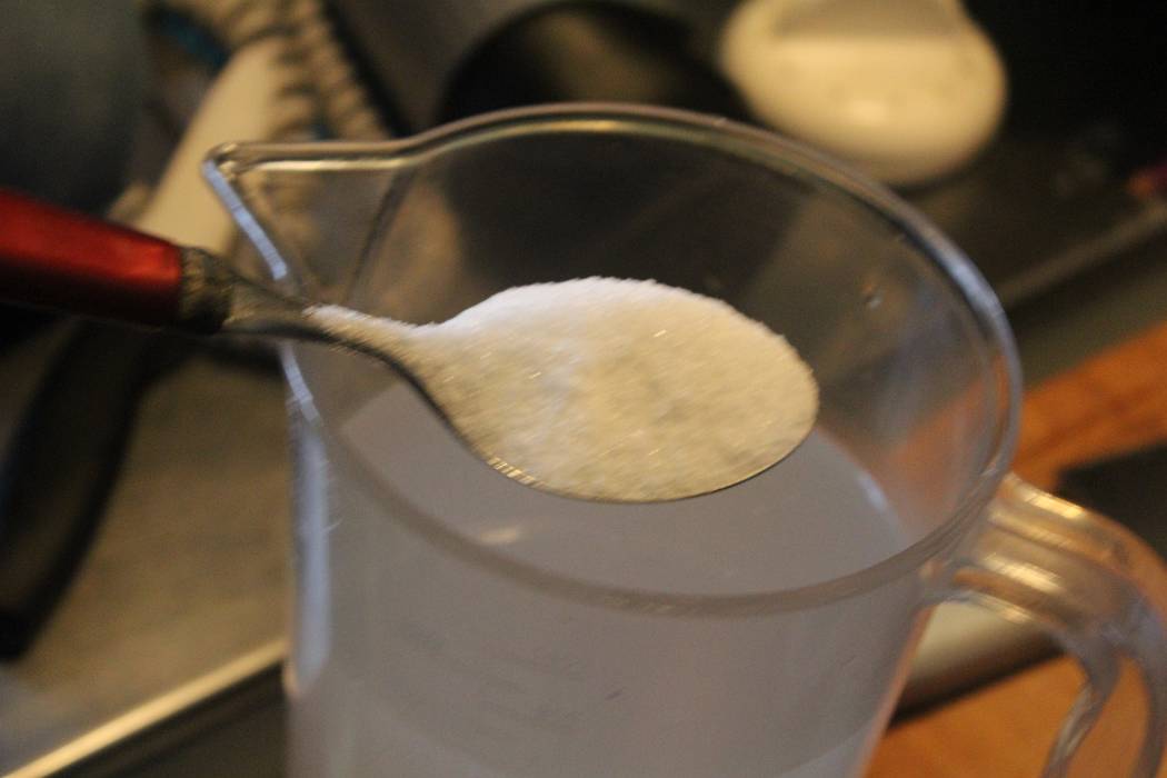 1 Esslöffel Zucker ebenfalls ins Wasser geben.