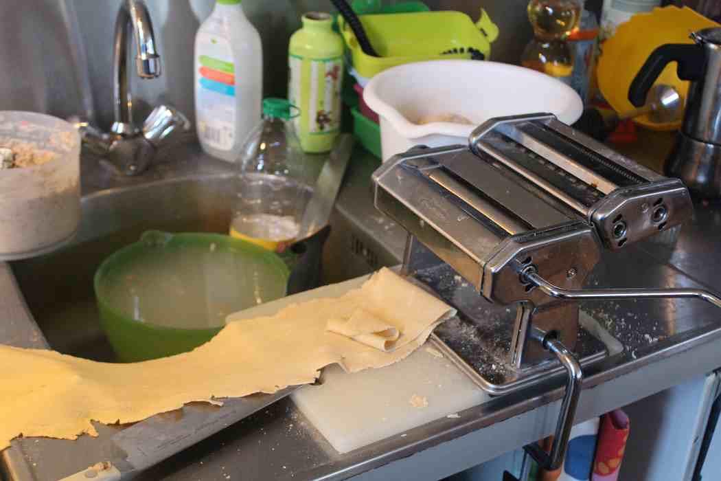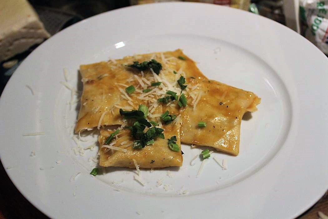 Selbst gemachte Nudeln, oder Ravioli machen immer Eindruck. Das liegt höchstwahrscheinlich daran, weil sie niemand selbst macht, da alle denken dass es schwer ist und lange dauert. Habe ich auch gedacht, bevor ich dann vor fünf Jahren damit angefangen habe, mit ganz einfachem Nudelteig zu arbeiten. Der größte Witz ist dabei der Preis. Das Material ist so günstig, dass man wirklich Mühe hat, zehn Euro für eine ganze Familie auszugeben. Die Arbeitszeit bekommt man mehrfach wieder zurück, in Form von Lob am Tisch und weil das Gerichte sind, die niemand vergisst und einen immer wieder darauf anspricht und einen zu einer Wiederholung überreden möchte.