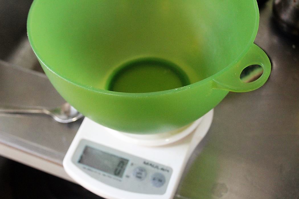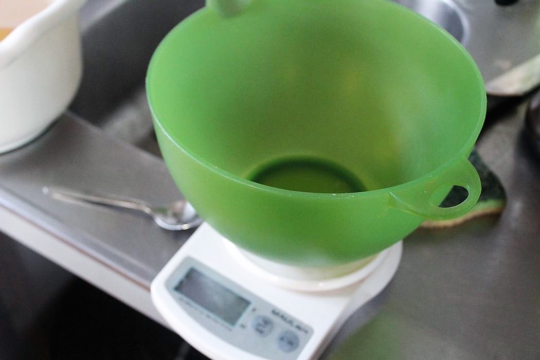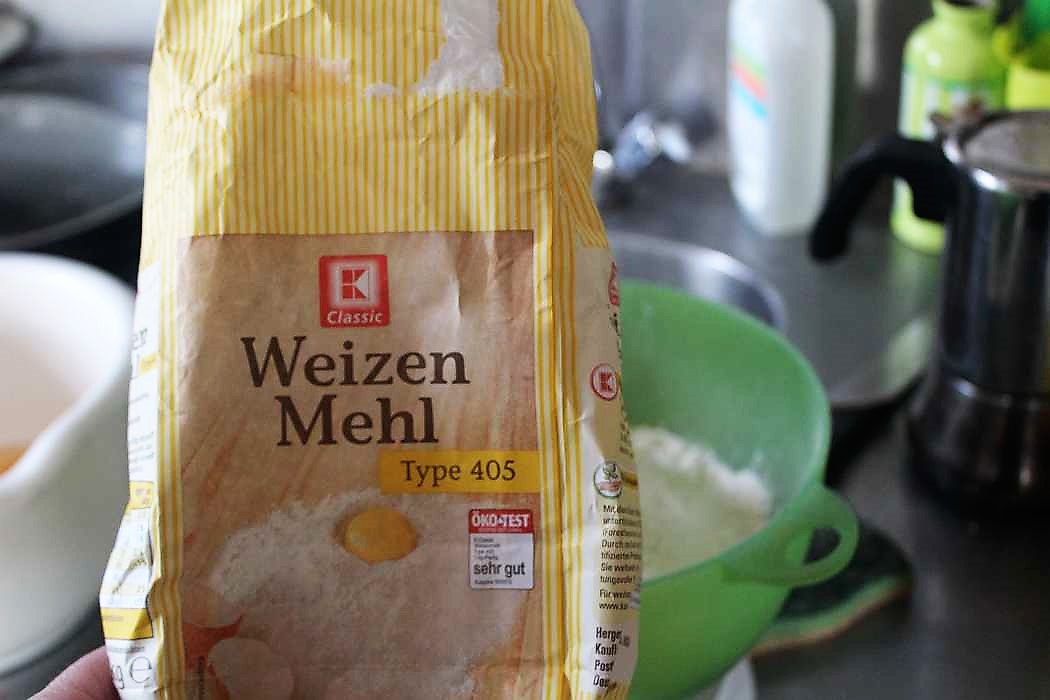 Das ist aber noch nicht die Rührschüssel, sondern ich bereite gerade mein Mehl vor.