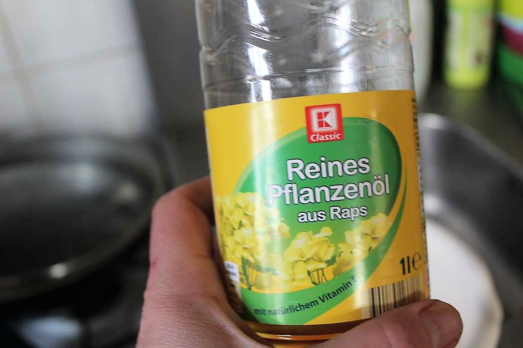 2 Esslöffel Öl. Das kann Rapsöl, Sonnenblumenöl, Olivenöl, oder 10 W 40 sein (just kiddin’).