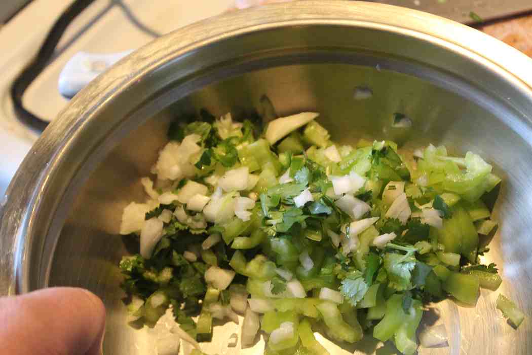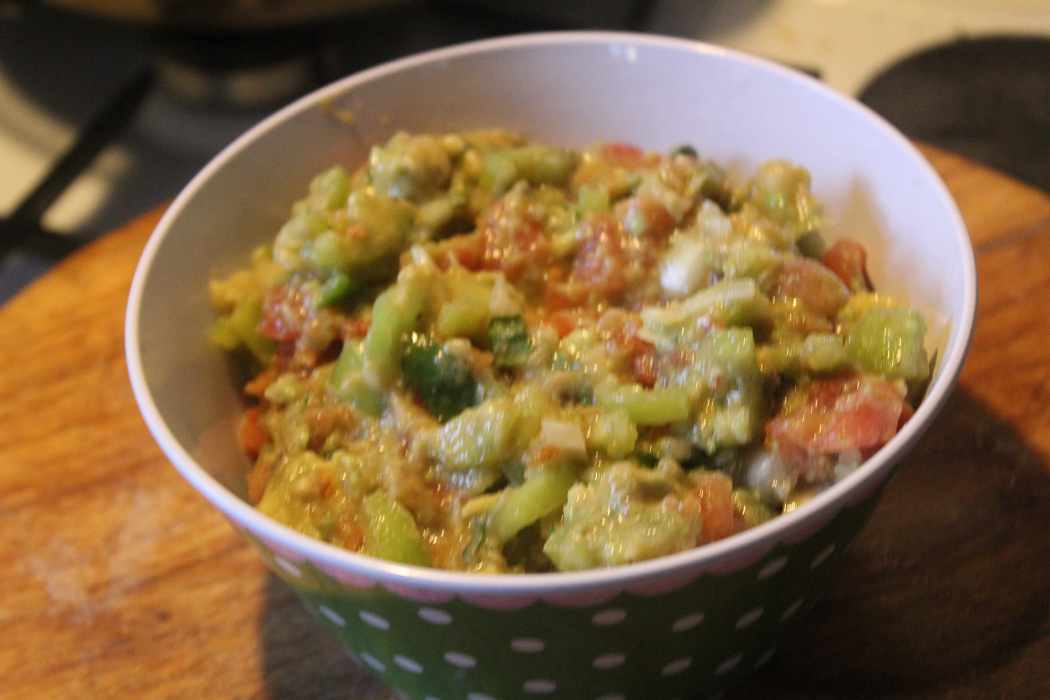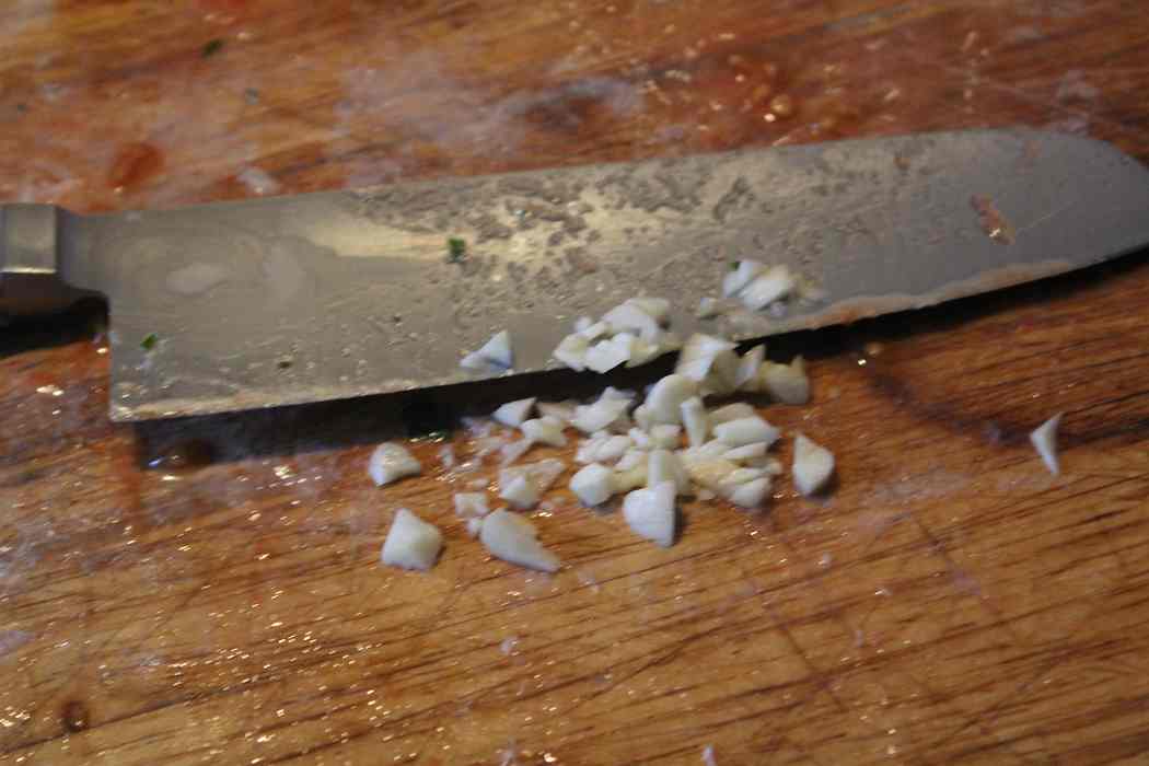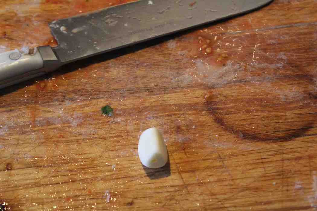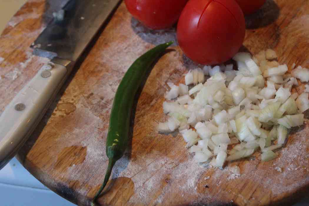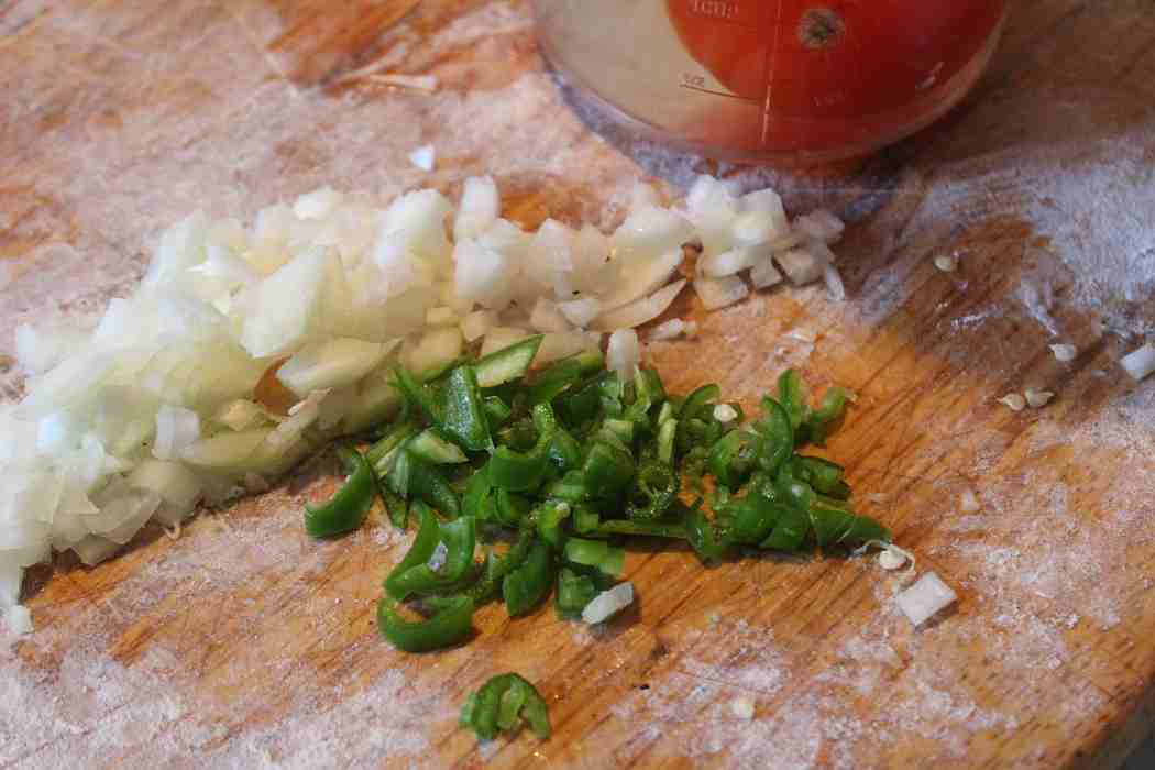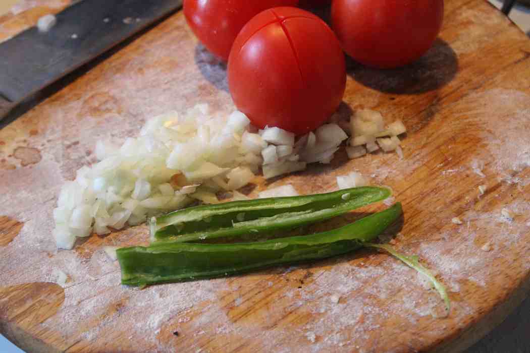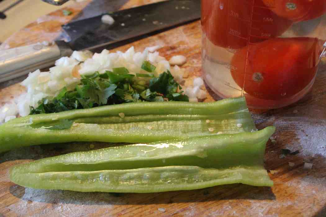 In der Zwischenzeit die grüne, entkernte Peperoni klein hacken