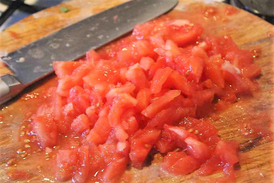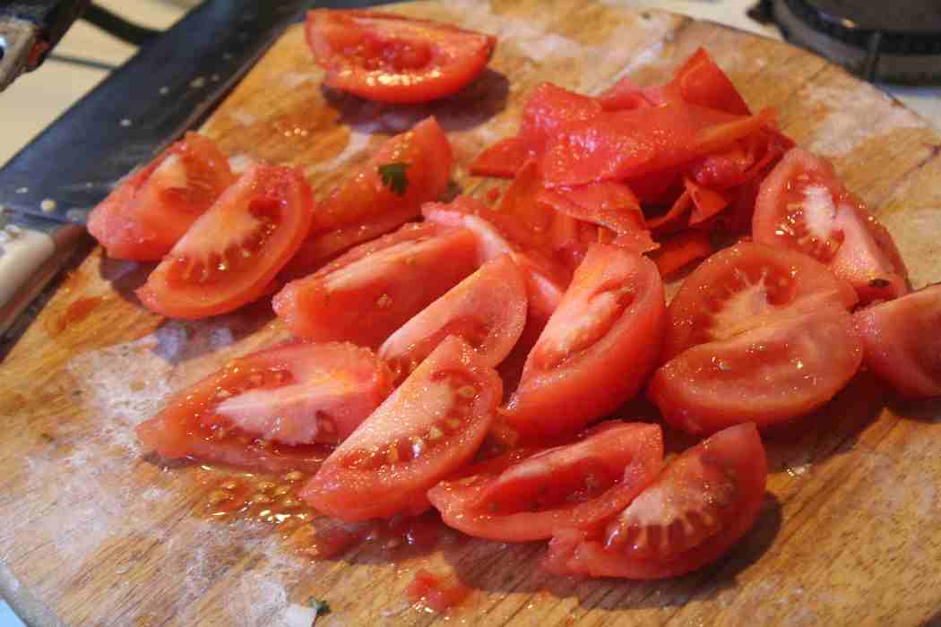 Den Glibber aus den Tomaten kratzen, also Kerne und das wässerige Zeug