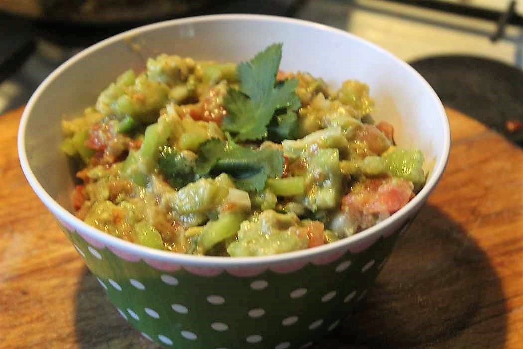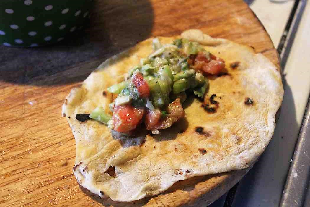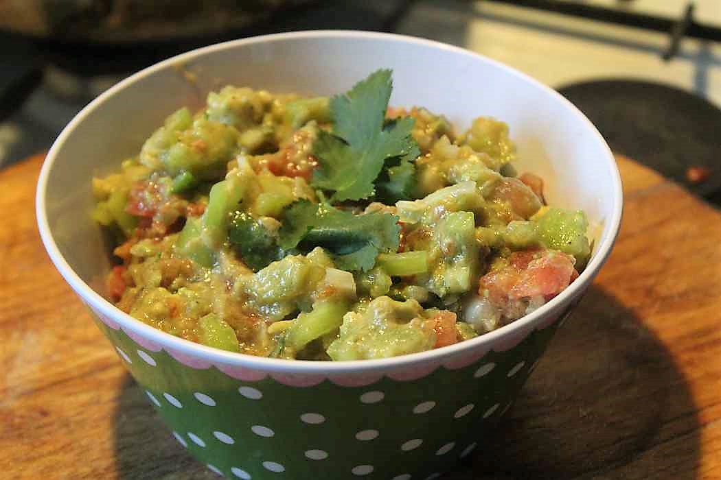 Diese Guacamole ist so frisch, dass sie einen fast anspringt. Echt der Hammer mit dezenter Schärfe der grünen Peperoni, die knackige Paprika, würzige Zwiebel, die gecleanten Tomaten, leicht knobig, mit der frischen Säure der Zitrone und der cremigen Avocado. In der Kombination schmeckt mir sogar der frische Koriander.