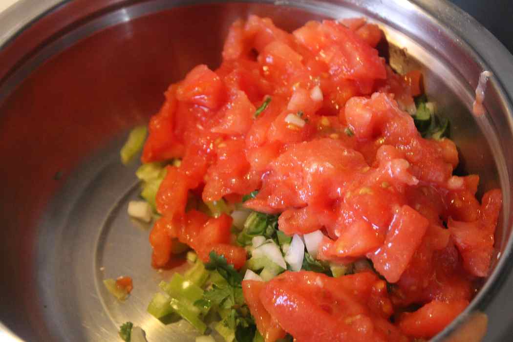 Tomatenstücke ebenfalls in die Schüssel geben.