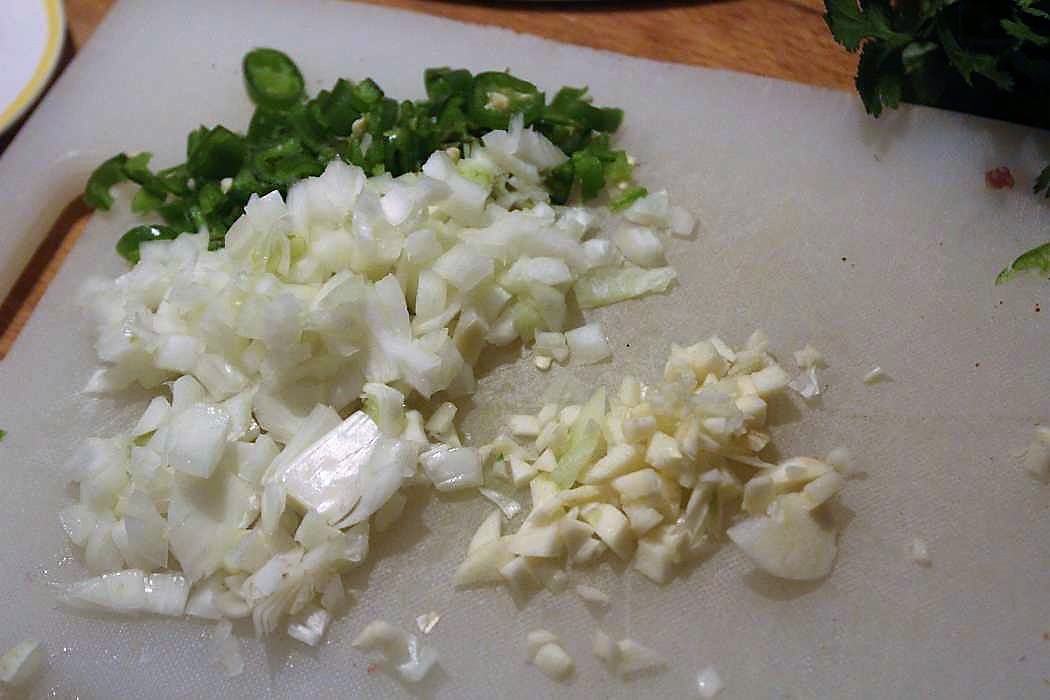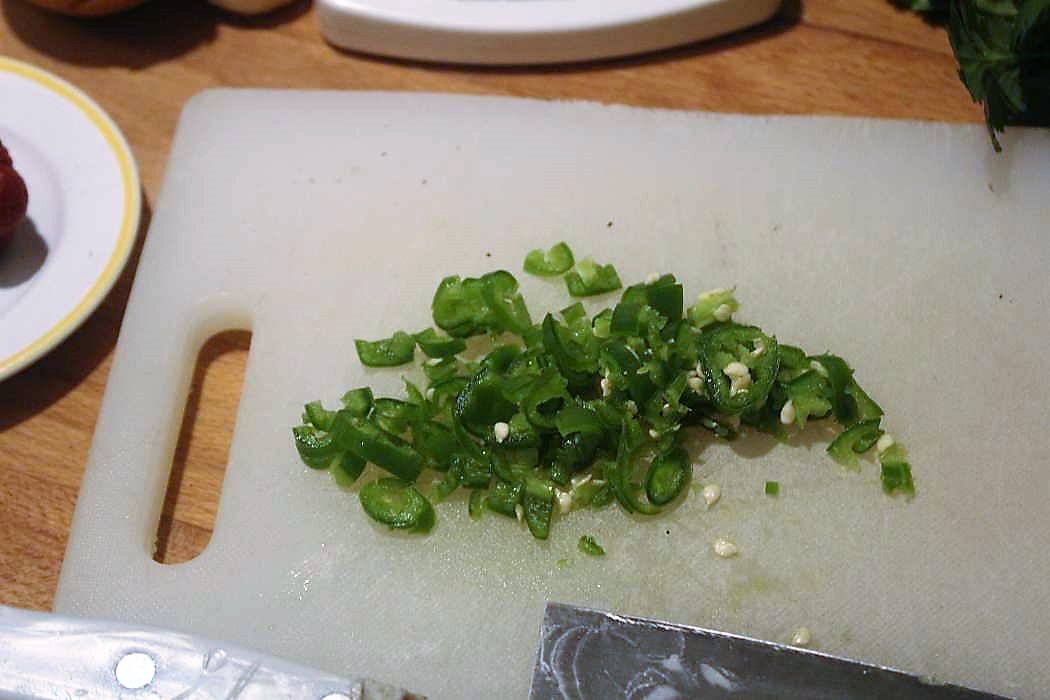 1 grüne Peperoni klein hacken.