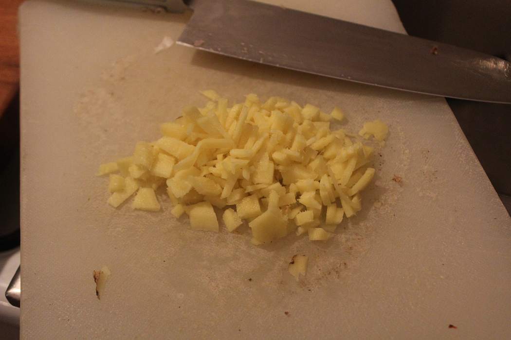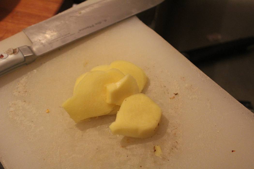 Dafür kann man einen Sparschäler, oder einen Esslöffel, oder ein gutes Messer wie mein Edition 7 von diePfanne.com verwenden.