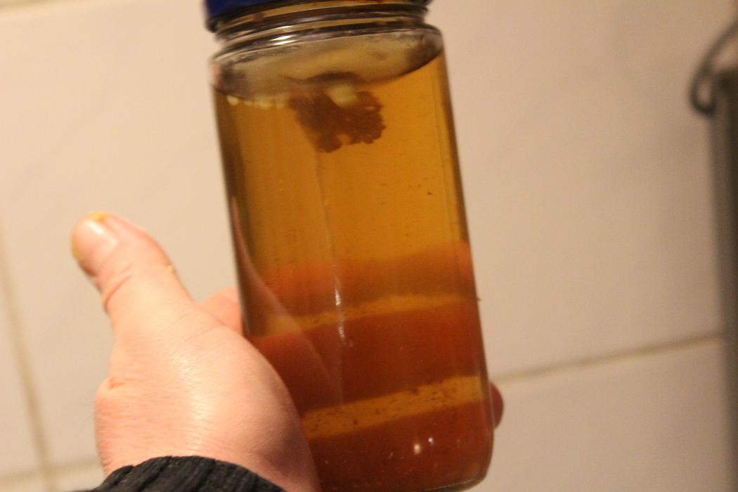 400 Milliliter Brühe. Die muss jetzt noch nichts tun, nur vorhanden sein.