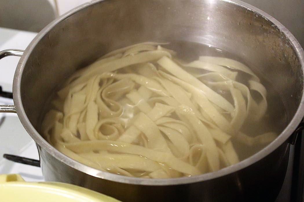 Nudeln sind jetzt zu Bandnudeln geschnitten.