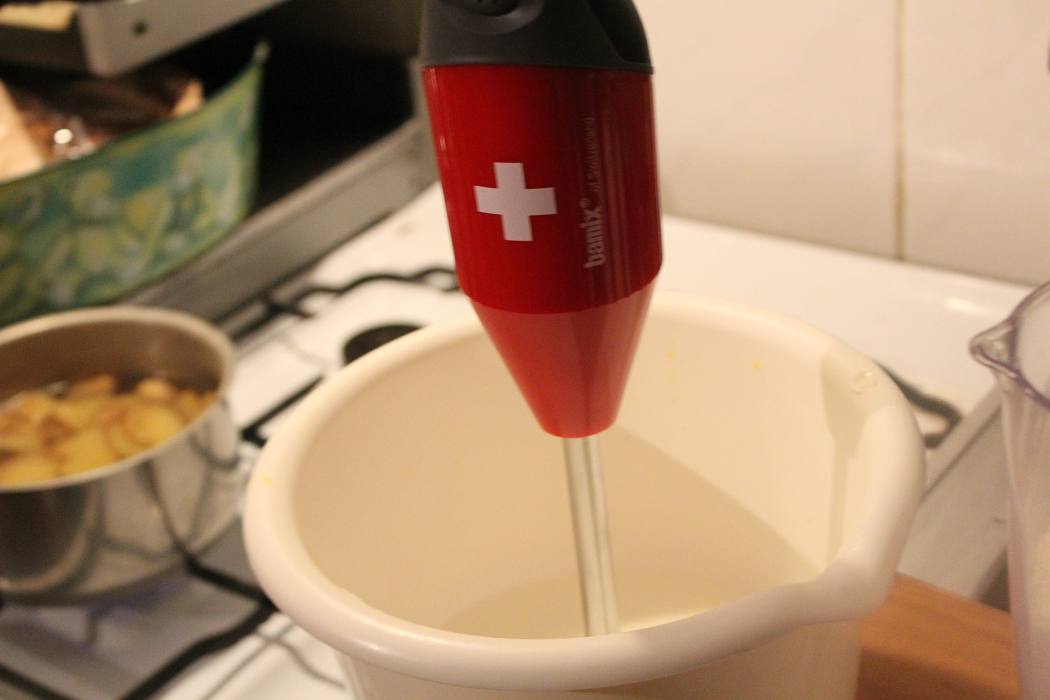 Ihr könnt natürlich auch jedes herkömmliche Rührgerät verwenden, aber der Bamix sieht schon klasse aus, oder?