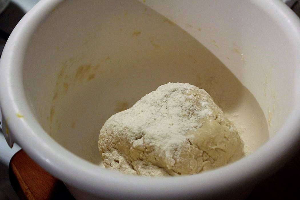 Der muss nicht ruhen und kann direkt weiter verarbeitet werden. Es fällt sofort auf, dass der Teig schön elastisch ist, fast so wie ein guter Pizzateig, aber nicht an den Fingern klebt. Mit dem quält man sich auf keinen Fall beim Ausrollen ab. Das kann jetzt schon vorhersagen.