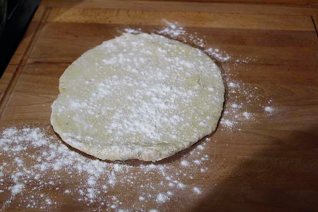 Der muss nicht ruhen und kann direkt weiter verarbeitet werden. Es fällt sofort auf, dass der Teig schön elastisch ist, fast so wie ein guter Pizzateig, aber nicht an den Fingern klebt. Mit dem quält man sich auf keinen Fall beim Ausrollen ab. Das kann jetzt schon vorhersagen.