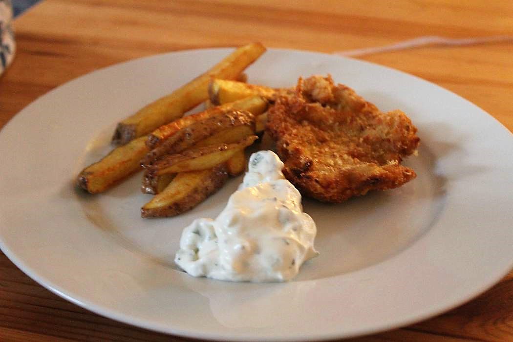 Ihr könntet jetzt das Fett der Pommes frites nehmen und Euer Schnitzel darin ausbacken