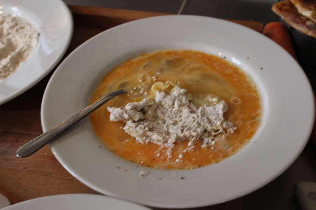 Wo wir gerade bei Bindung sind, drei Eier dazu schlagen.
