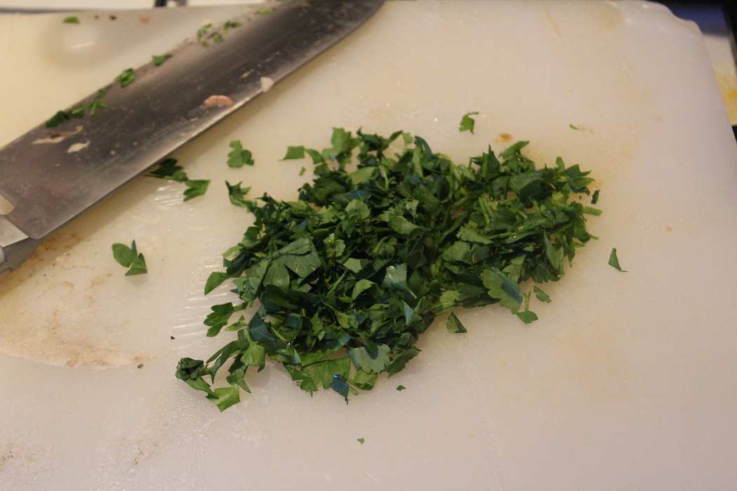 In der Zwischenzeit kann man schon ein bisschen Gemüse schneiden.