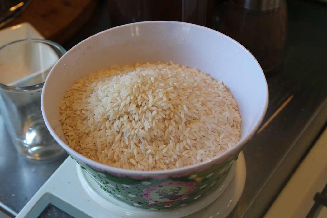 Heißes Wasser mit dem Wasserkocher, oder auf dem Herd machen und damit den Reis begießen, bis er komplett abgedeckt ist.