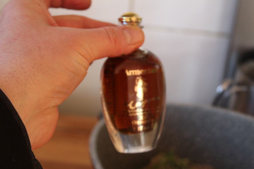 Ich hatte keine Lust auf ne Flasche Weinbrand, deswegen habe ich mir im Gegenzug so ne Miniflasche 10 Jahre alten Armenischen Brandy gekauft. Ihr seid der Chef, von mir aus kippt da auch Wilthener Goldkrone drauf.