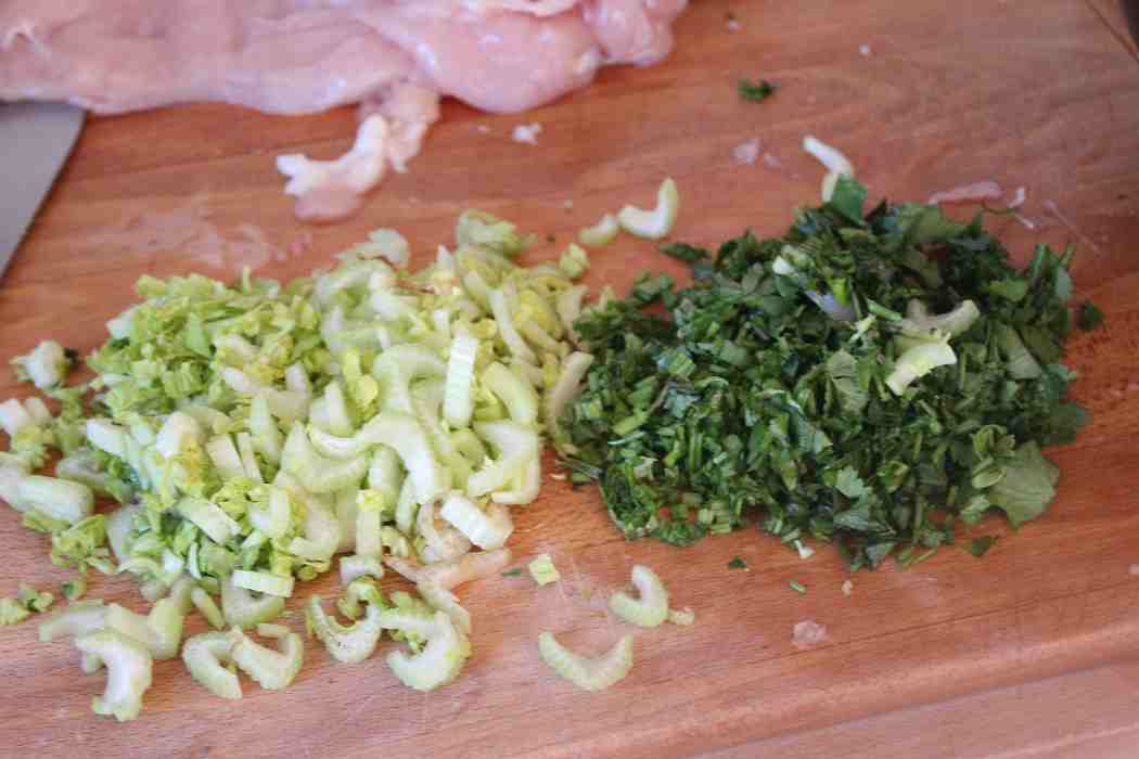 Hier seht Ihr gehackten Staudensellerie und Koriander. Wer partout keinen Koriander mag, kann an der Stelle auch Petersilie verwenden, dann ist er wieder eher in Tschechien, als in Mexiko.