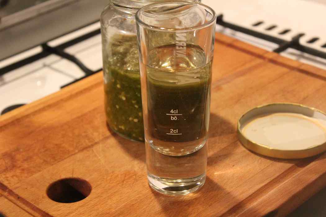 Kleiner Tipp am Rande, die Masse sollte nach der Fermentation nochmals püriert werden. Hierbei werden die Kerne aufgebrochen und es geht deutlich mehr Schärfe in die Flüssigkeit über. Dann durch einen Kaffeefilter und fertig.