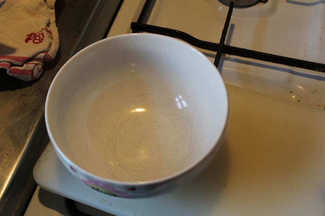 Ich fülle den Glasinhalt in eine Schüssel um