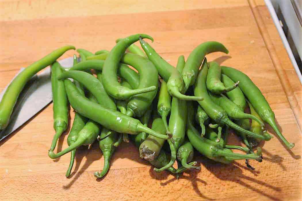 500 Gramm grüne Peperoni. Das waren die einzigen, die mein Gemüsehakan gerade noch am Samstag lagernd hatte. Ich hätte gerne rote genommen, aber die 500 Gramm rote Peperoni, die ich vorher mal für dieses Projekt gekauft hatte, sind mir tatsächlich schlecht geworden, weil ich es so lange vor mir hergeschoben habe.