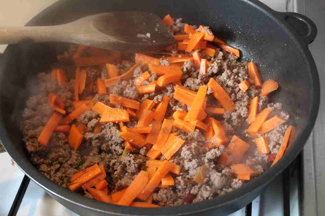 Möhren ebenfalls in die Pfanne geben.
