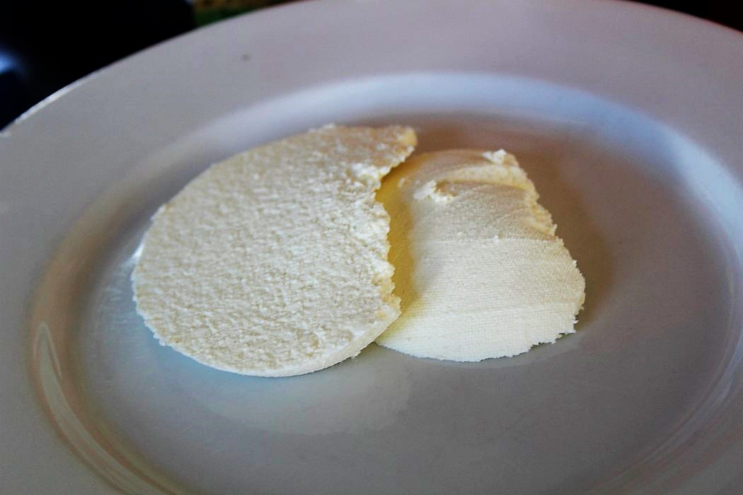 Wenn man den Käse fest genug gepresst hat, dann ist der Frischkäse schnittfest.