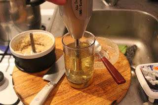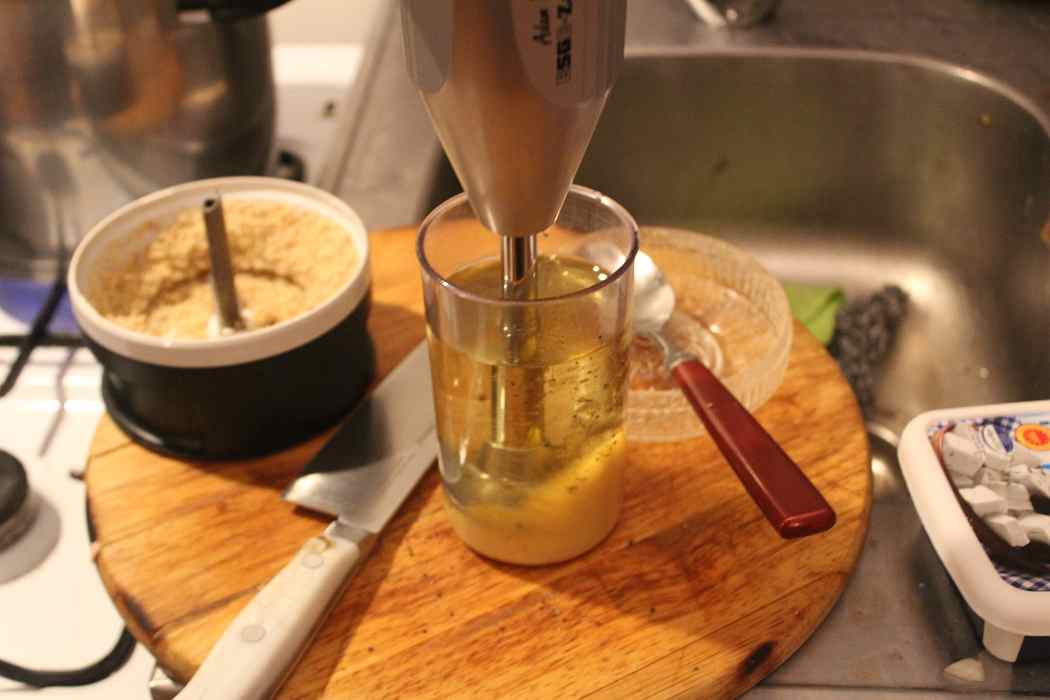 Vollgas geben und zuschauen, wie die Masse im Mixbecher schnell emulgiert.