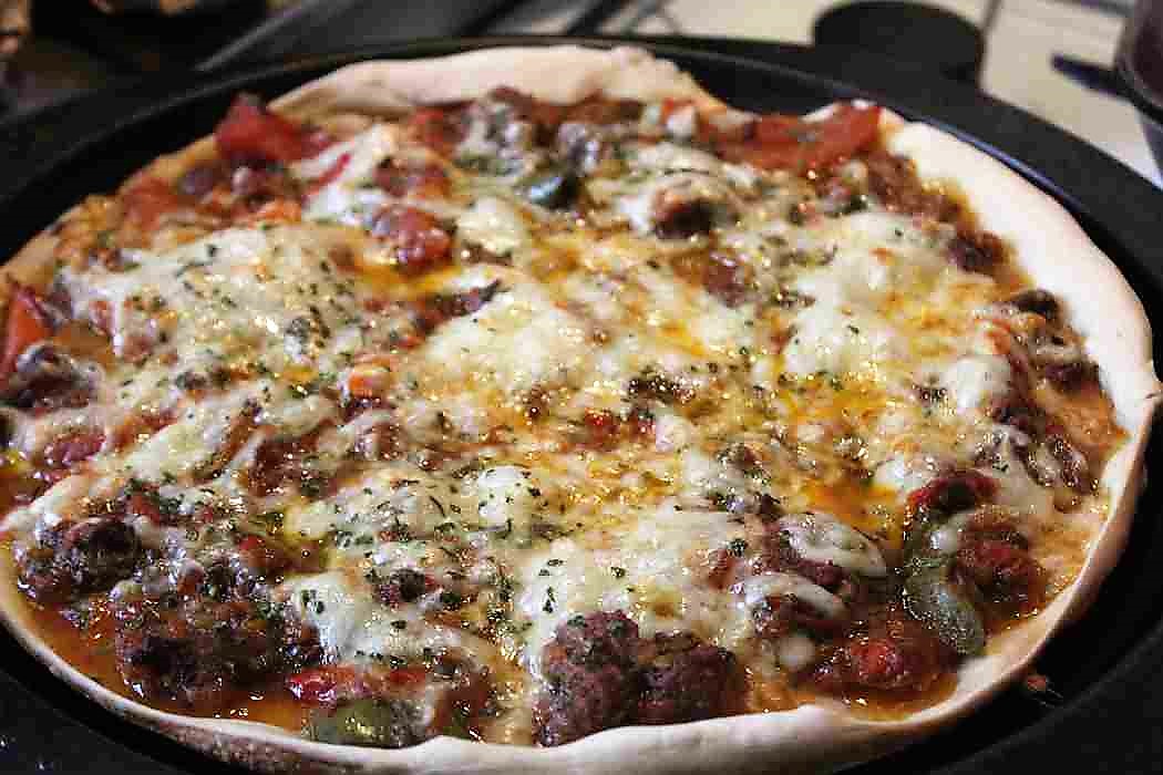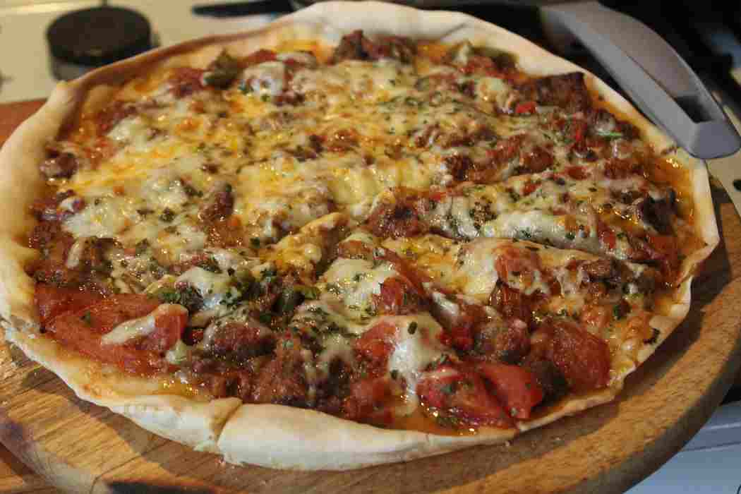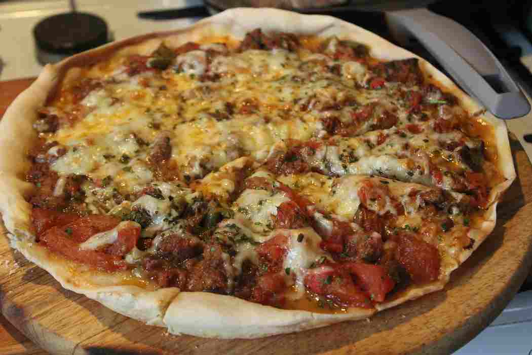 Eine Pizza hat nur eine begrenzte Zeit im Ofen, in der soll sie ein bisschen aufgehen und knusprig werden und der Belag ebenfalls durcherhitzen. Wie soll der das machen, wenn da nen halben Meter dick Auflage drauf ist?