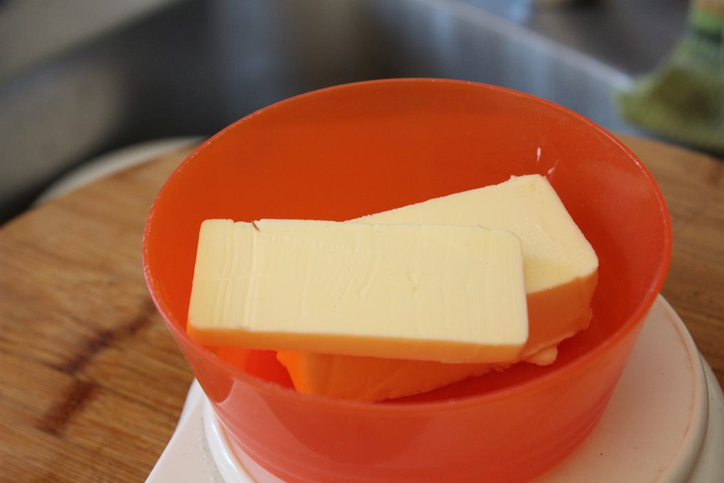 75 Gramm Butter abwiegen.