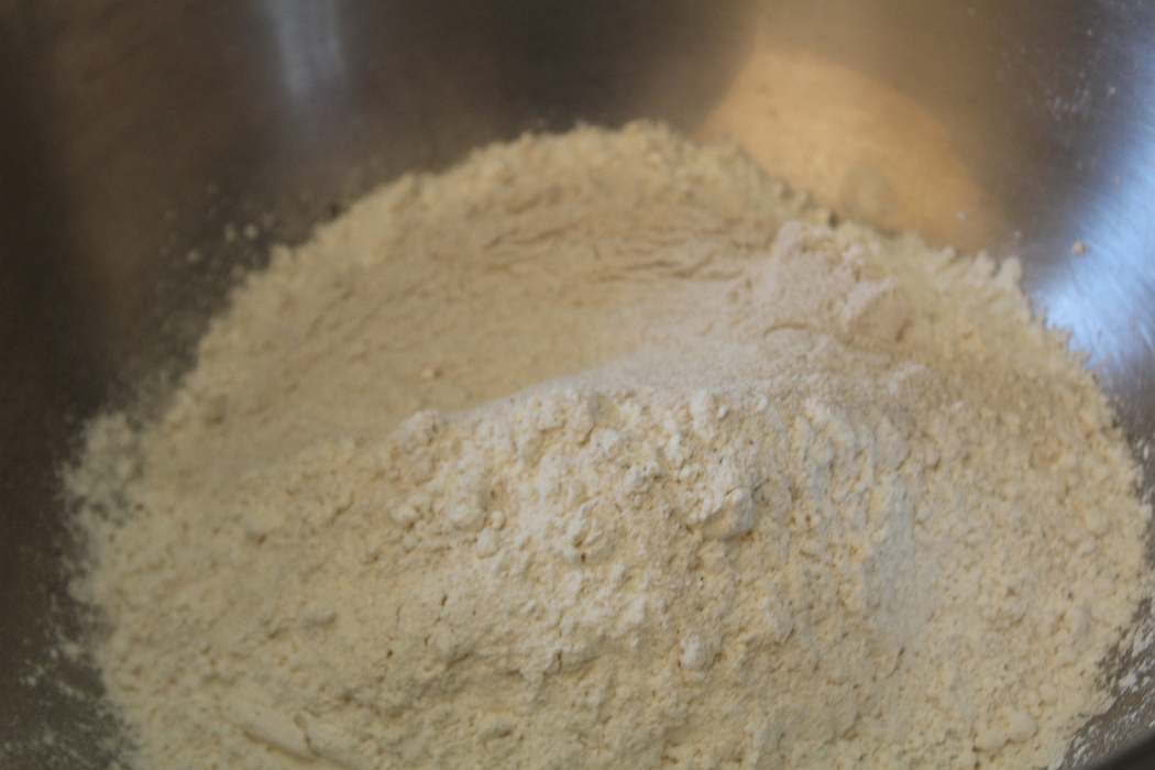 Buchweizenmehl mit dem Dinkelmehl vermischen