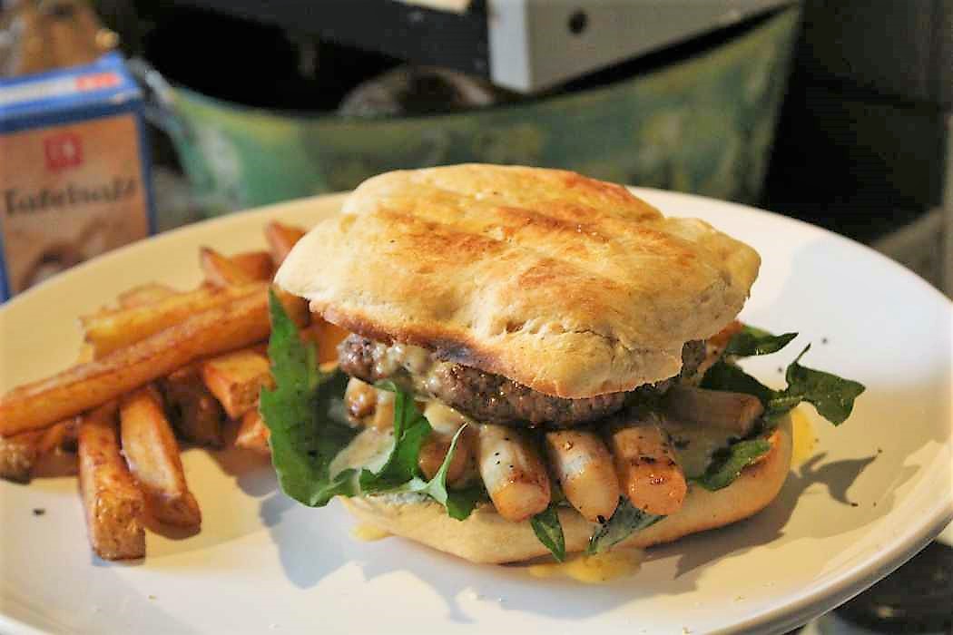 Zu einem Spargelburger mit selbst gemachter Soße hollandaise und selbst gemachten Pommes passt es jedenfalls perfekt. (Rezept kommt)