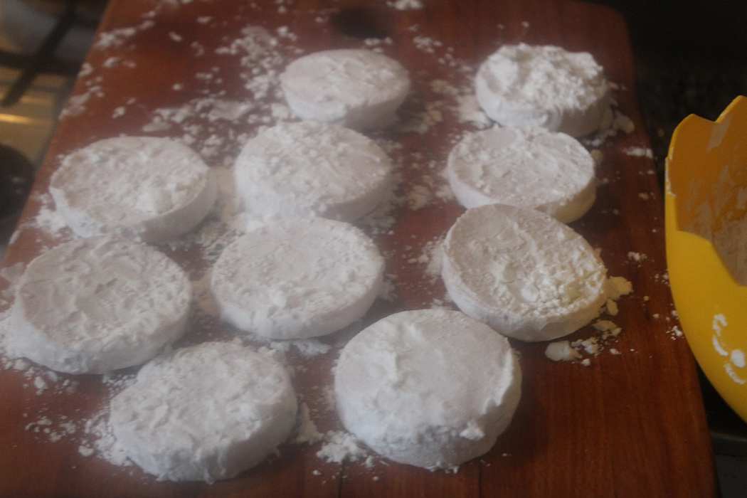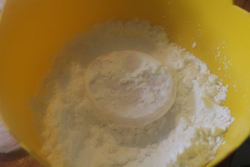 Die bemehlte Jagdwurst zur Seite stellen und Nudeln kochen, falls das die Beilage Eurer Wahl ist
