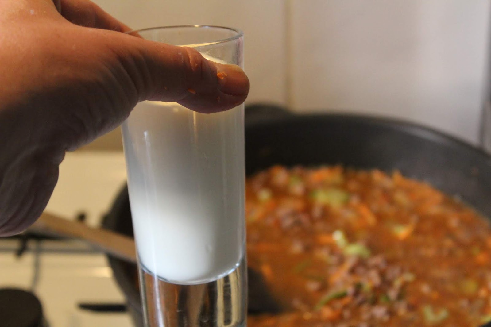 Die gleiche Menge Milch, damit die Soße am Ende schön cremig wird.