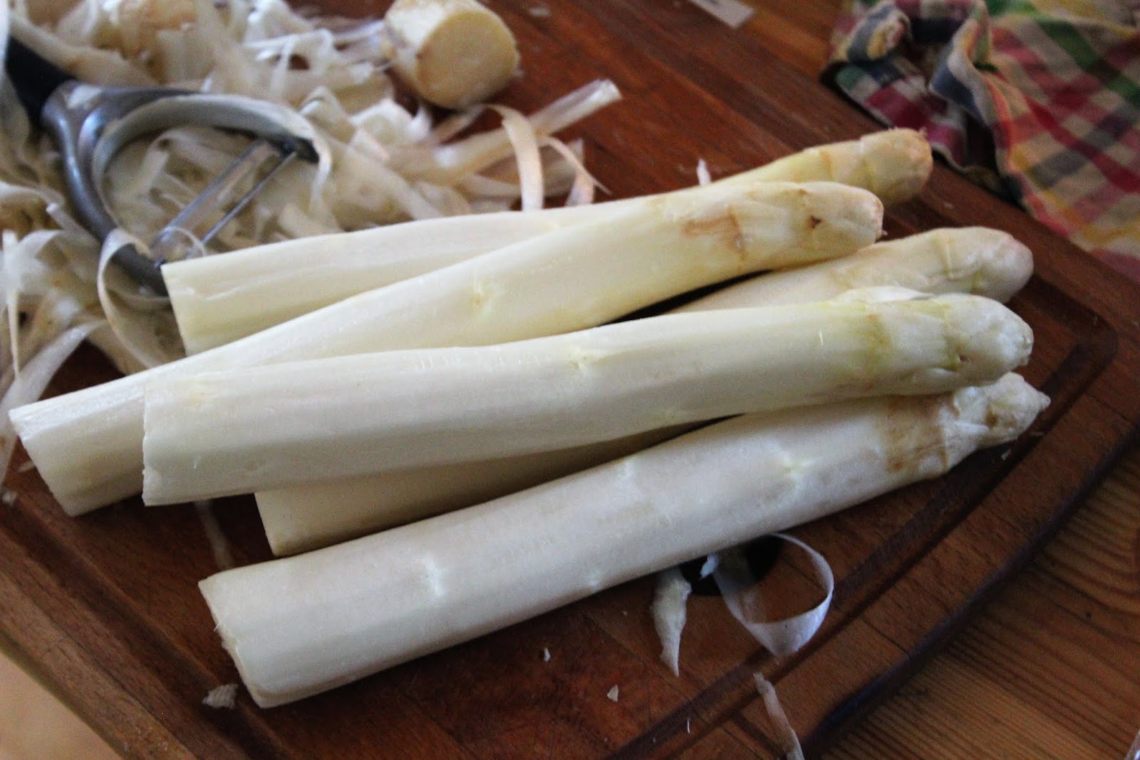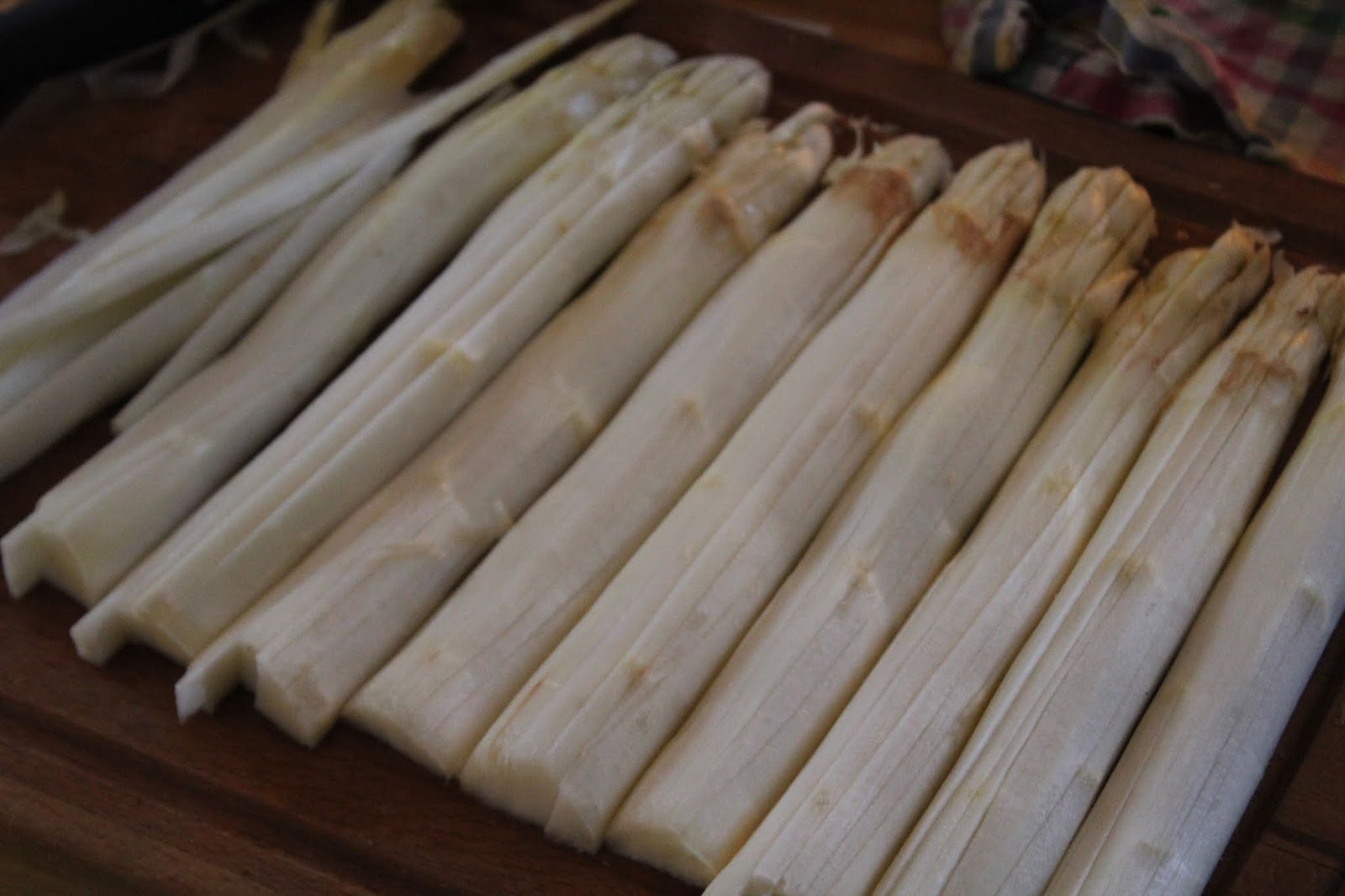 Wenn die Bolognese so ist, wie sie sein soll, geht es an den Spargel Ich habe das nur als kleinen Ansatz gemacht, aber ein Kilo solltet Ihr zu viert schon haben