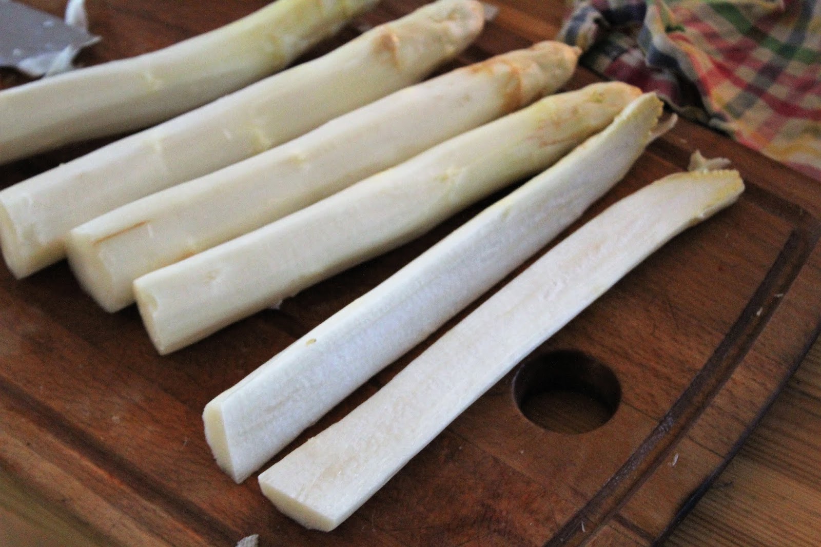 Den Spargel halbieren