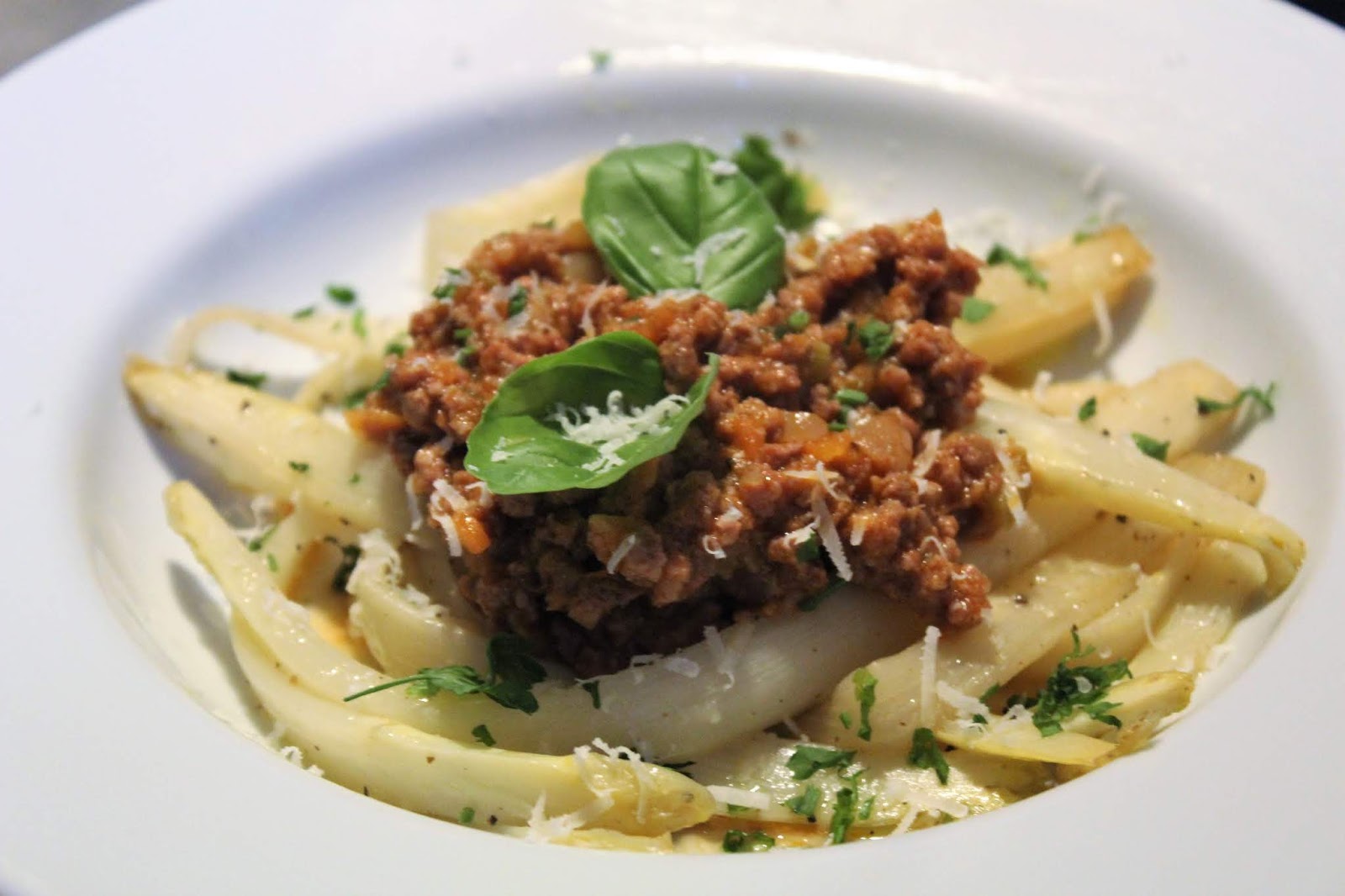 Am längsten dauert das Ragu alla Bolognese. Deswegen sollte man das ein paar Stunden vorher, oder noch besser am Vortag zubereiten. Vielleicht wolltet Ihr das ursprünglich auch gar nicht für Spargel kochen, wer tut das schon? Das kann auch der Rest Bolognese eines Nudelgerichts sein.