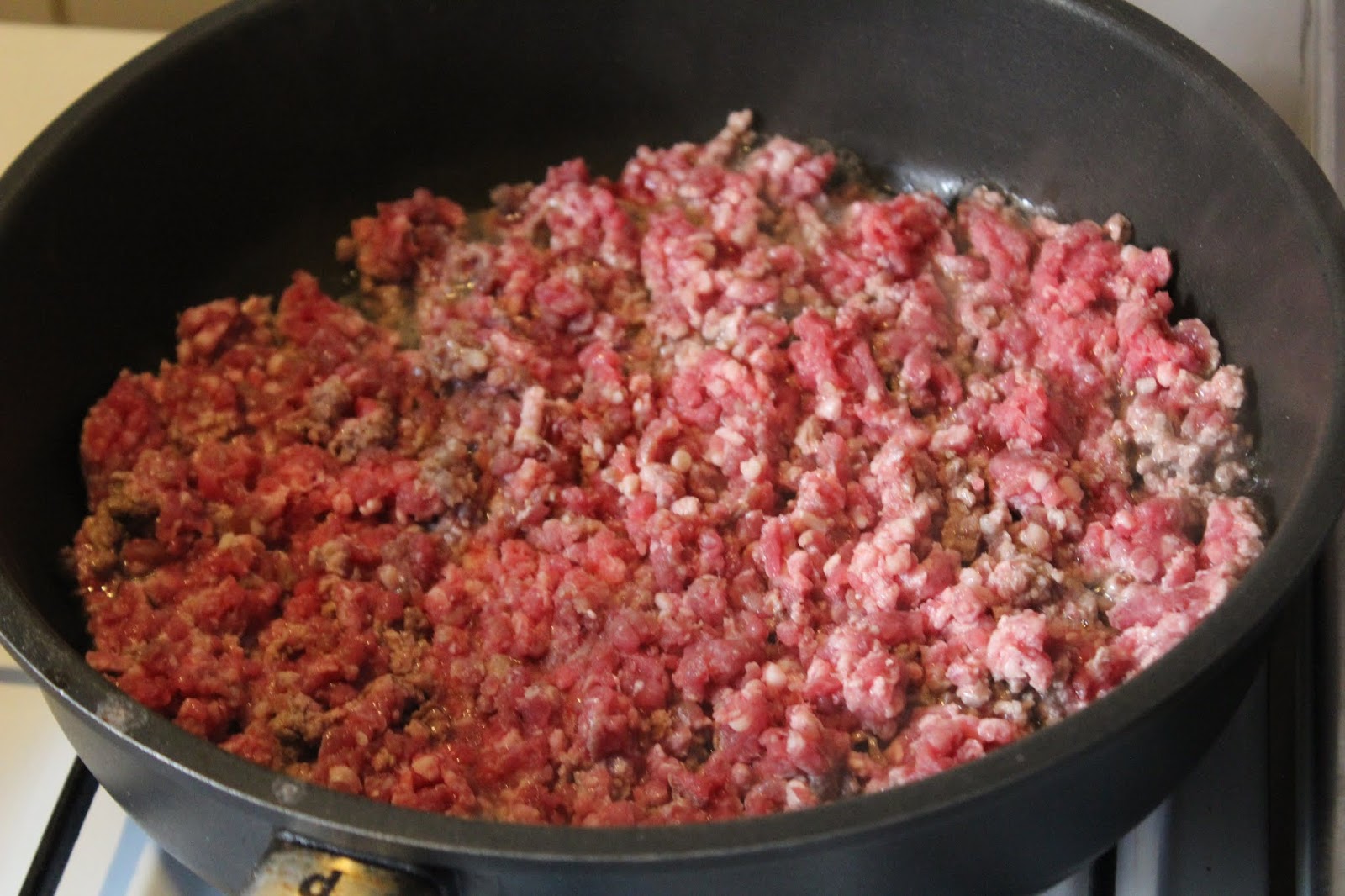 Rinderhack vor dem Braten kneten und dann ohne Fett in der Pfanne ausbraten.