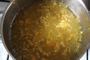 Die gereinigte Flüssigkeit aufkochen und 8 Minuten eindicken lassen, wenn es gekocht hat.