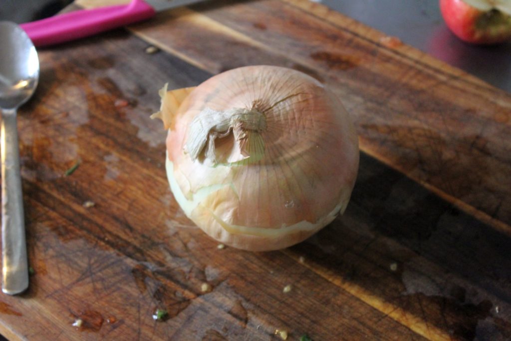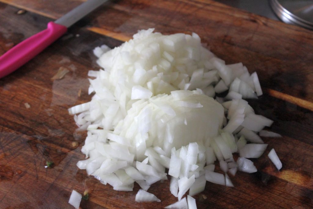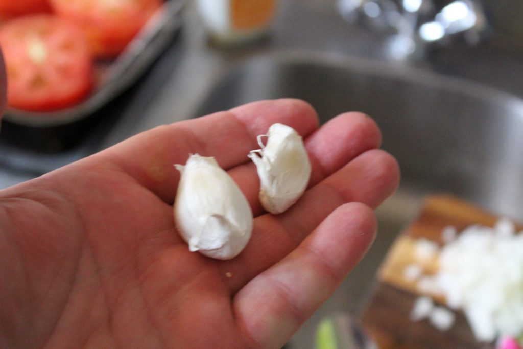 Zwei Knoblauchzehen zum Hackfleisch pressen